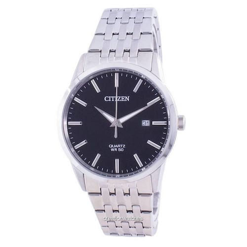 Relógio masculino Citizen Black Dial Luminous Hands Stainless Steel Quartz BI5000-87E