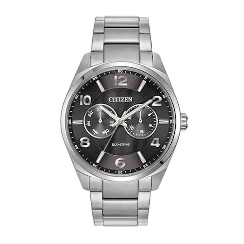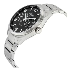 Um clássico moderno redescoberto com este relógio analógico para dia/encontro. Em aço inoxidável com mostrador preto e função day-date. Apresentando nossotecnologia eco-drive, alimentada por luz, qualquer luz. Nunca precisa de uma bateria. Calibre número 8635.