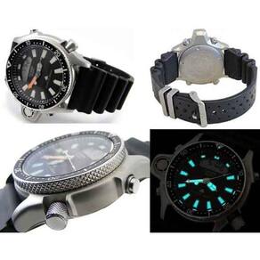 Relógio Citizen Masculino Aqualand Promaster JP2004-07E TZ10137T é Ideal Para Quem Pratica Mergulhos Profissionais ou Amadores. Com Ele é Possível Marcar Automaticamente 8 Dados de Mergulhos, Consultar os 4 últimos Registros dos Mergulhos, como: Mês, Data, Profundidade Máxima, Profundidade Média, Tempo de Mergulho e Temperatura Mínima. Conta Ainda Com Alarme de Profundidade, Alarme de Tempo de Mergulho, Alarme de Subida, Cronógrafo e Formato 12/24 horas. Resistente à Água 200M.