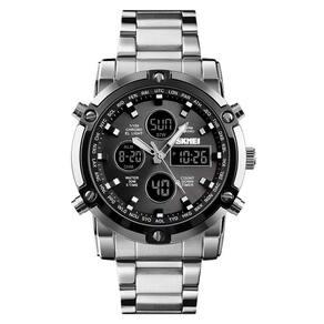 Relógio digital masculino CNBRO, relógios esportivos militares, cronômetro à prova d'água, relógio analógico externo, alarme, relógio de negócios LED de tempo duplo, preto, prata