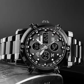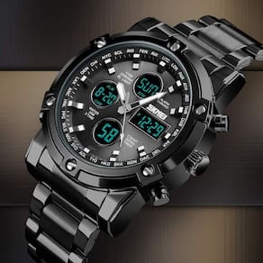 Relógio digital masculino CNBRO, relógios esportivos militares, cronômetro à prova d'água, relógio analógico externo, alarme, relógio de negócios LED de tempo duplo, preto, prata