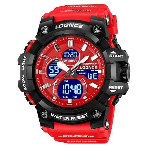 Relógio com ecrã duplo - Digital Análogo, à prova de água quartzo - Vermelho