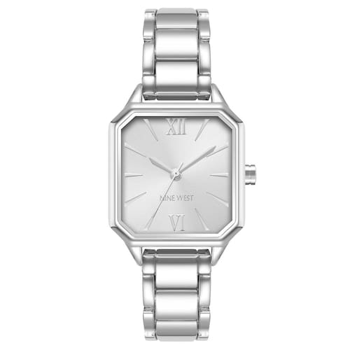 Nine West Relógio de pulseira feminino, Prata, NW/2903SVSV - Lente de cristal mineral - Mostrador prateado com ponteiros e marcadores combinando - Pulseira de elos ajustáveis em tom prateado; fecho dobrável com botão duplo de segurança - Não é resistente à água