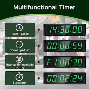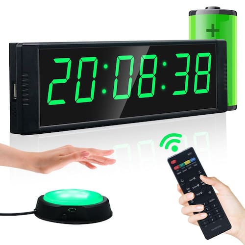 YZ Relógio de ginástica para academia em casa, temporizador de fitness com botão de iniciar/parar, temporizador de intervalo para treino, cronômetro/temporizador de contagem regressiva com controle remoto, relógio de parede digital 12/24H, acessórios portáteis para academia doméstica - ?Parceiro de temporização versátil? O relógio digital YZ com exibição de segundos é um relógio de 12/24 horas com função de alarme, um temporizador de contagem regressiva, um temporizador de intervalo, um cronômetro digital com precisão de milissegundos. Tempo de preparação de 3/5/10 segundos pode ser escolhido. - ?Temporizador de LED super brilhante?Distância visual de 40 pés, os grandes números de LED são claros mesmo à distância. Ajuste de brilho de 5 níveis, brilhante o suficiente para ser visto em ambientes internos ou externos, dia ou noite. - ?Botão e controle remoto?O design exclusivo de botão externo torna o horário mais divertido e fácil, a linha do botão pode ser estendida para 508 cm. Você pode controlar o temporizador iniciar/parar/continuar/reiniciar com o botão. Há também um controle remoto que pode ser utilizado para operar todas as funções. - ?Temporizador portátil para academia?Tamanho 26,4 cm x 7,6 cm x 2,5 cm, muito fácil de transportar e colocá-lo facilmente em sua bolsa de ginástica. É alimentado por bateria e sem fio para que você possa usá-lo em qualquer lugar, é um parceiro perfeito para academias domésticas, garagens, escolas, parques ou qualquer outro local de fitness interno e externo. - ?Uso em vários cenários? Nosso temporizador digital é adequado para diferentes cenários. Mantenha tempo para trabalhar, estudar, treinar, jogos, fitness, cozinhar, etc. Você também pode usar os parafusos para fixá-lo na parede, mudar para temporizador de parede digital com tela grande e brilhante.