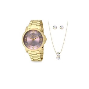 relógio condor feminino co2035kom/k4a - dourado relógio condor feminino co2035kom/k4a. Sistema analógico, mostrador roxo claro e detalhes em dourado e strass no aro, caixa de metal e pulseira de aço inox, vidro de cristal mineral, resistente à água 50m. Acompanha um colar, um par de brincos, manual de instrução, e certificado de garantia de um ano do fabricante. Espessura: 0,4cm aprox garantia: 12 genero: femininolinha: steeltodas as informações divulgadas são de responsabilidade do fabricante/fornecedor. Imagens meramente ilustrativas. Codigo de barras: 7891530397035