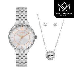 Relógio Condor Feminino Prata CO2036MYC/K4K Relógio Condor feminino, analógico, redondo, prata com caixa e pulseira em aço. Possui o mostrador prateado. Com pedras cravejadas por todo o aro externo e também nos marcadores de hora. Esse modelo é de elegância em todos os lugares. Resistente à água em até 50 metros. Acompanha ainda uma linda semijóia, ideal para presentear. Tamanho pequeno 3,2 cm . Condor Elegante CO2036MYCK4K Analógico Movimento: Quartz Gênero: Feminino Visor: Prata Vidro: Cristal mineral Diâmetro da caixa: 31,5mm Altura da caixa: 9mm Pressão: 50M Fundo: Pressão Característica: Caixa e pulseira em aço. Fecho dobrável com dois botões. : 1 ano Acompanha caixa da marca, manual de instruções e certificado de . Marca: Não Informado