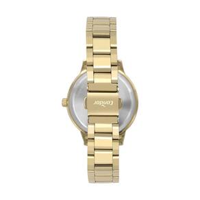 Relógio condor feminino ref: co2035nci/4x casual dourado Descrição do produto: Caixa de metal Pulseira de aço Vidro de cristal mineral Fundo pressão Resistente à água 5 atm Diâmetro / largura da caixa: 36.00 mm Alimentação do maquinário: bateria Maquina japonesa Mostrador dourado com numeros de 1 ano Marca: Não Informado