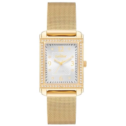 Relógio Condor Feminino Ref: Co2035ncp/4k Retangular Mesh Dourado DESCRIÇÃO DO PRODUTO: Caixa de Metal Pulseira de Malha de Aço Mesh Vidro de Cristal Mineral Fundo Pressão Resistente à Água 3 Atm Diâmetro / Largura da Caixa: 30.00 MM x 35.00 MM Alimentação do Maquinário: Bateria Maquina Japonesa Mostrador prateado com numeros e pedras Aro externo de pedras de 1 Ano Marca: Não Informado