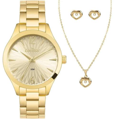 Relógio Condor Feminino Ref: Co2035nic/k4x Dourado + Semijóia DESCRIÇÃO DO PRODUTO: Caixa de Metal Pulseira de Aço Vidro de Cristal Mineral Fundo Pressão Resistente à Água 5 Atm Diâmetro / Largura da Caixa: 36.00 MM Alimentação do Maquinário: Bateria Maquina Japonesa Mostrador Dourado com números + Corrente, Pingente e Par de Brincos Semijóia de 1 Ano Marca: Não Informado Ean: 7891530848650