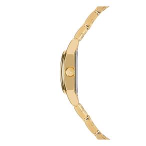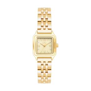 Mostrador dourado com algarismos romanos e pedras