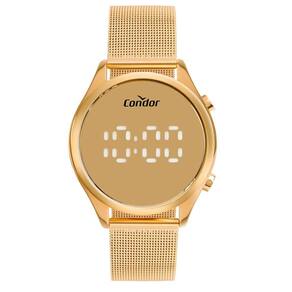 Relógio Condor Feminino Ref: Comd26aac/4d Led Espelhado Mesh Dourado DESCRIÇÃO DO PRODUTO: Caixa de Metal Pulseira de Malha de Aço Mesh Vidro de Cristal Mineral Fundo Pressão Resistente à Água 5 Atm Diâmetro / Largura da Caixa: 38.00 MM Alimentação do Maquinário: Bateria Funções: Digital, Led Branco, Calendário Mostrador Dourado espelhado de 1 Ano Marca: Não Informado