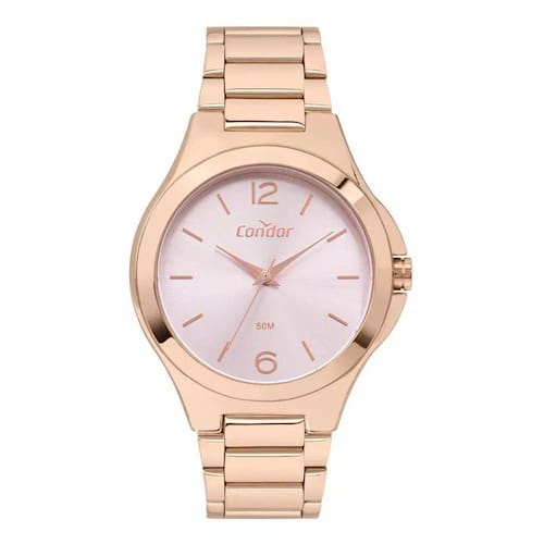 Relógio Condor Feminino - Copc21Jem/4G - Rosê Mostrador Rosa. O Relógio Condor Feminino Copc21Jem/4G é perfeito para mulheres modernas e sofisticadas que buscam um acessório elegante e versátil para complementar seu estilo. Com design delicado e acabamento em rosê, esse relógio é um verdadeiro charme. Produzido com materiais de alta qualidade, o relógio Condor possui uma caixa de metal resistente, que garante durabilidade e proteção ao produto. O vidro de cristal mineral confere resistência a riscos e arranhões, mantendo o mostrador sempre nítido e visível. A pulseira de aço na cor rosê é confortável e ajustável, se adaptando perfeitamente ao pulso. Além disso, o fecho de implantação com trava lateral proporciona segurança e praticidade no uso diário. O mostrador em tom rosê é um destaque especial desse relógio, conferindo feminilidade e elegância ao acessório. Com formato redondo e marcadores de horas em numeração romana, o relógio Condor Copc21Jem/4G é perfeito para quem busca um visual clássico e atemporal. Esse relógio funciona através de um mecanismo analógico de alta precisão, alimentado por uma bateria de quartzo. Isso garante uma excelente performance e uma marcação de horas precisa. Com resistência à água de até 5 atm, esse relógio é ideal para uso no dia a dia, sendo resistente a respingos d'água, chuva e lavagem das mãos. No entanto, não é recomendado para uso em ambientes com água corrente, piscinas ou mergulhos profundos. A Condor é uma marca reconhecida pela qualidade e design de seus produtos. Com mais de 50 anos de experiência no mercado, a marca é referência no segmento de relógios, oferecendo produtos que aliam estilo, inovação e durabilidade. Não perca a oportunidade de adquirir o Relógio Condor Feminino Copc21Jem/4G - Rosê Mostrador Rosa e garanta um acessório que irá valorizar ainda mais o seu visual. O relógio é resistente à água? Sim, o relógio possui resistência à água de até 5 atm. 2. Posso usar o relógio na piscina? Não, o relógio não é adequado para uso em piscinas ou mergulhos profundos. 3. A pulseira é ajustável? Sim, a pulseira de aço é ajustável. 4. Qual é o tamanho da caixa do relógio? A caixa do relógio possui um diâmetro de 4,0 cm e uma espessura de 1,0 cm. 5. Qual é o peso do relógio? O relógio possui um peso de 80 gramas. 6. Qual é o tipo de mecanismo do relógio? O relógio possui um mecanismo analógico de alta precisão, alimentado por uma bateria de quartzo. Garanta já o seu Relógio Condor Feminino - Copc21Jem/4G - Rosê Mostrador Rosa e tenha um acessório de qualidade e estilo.