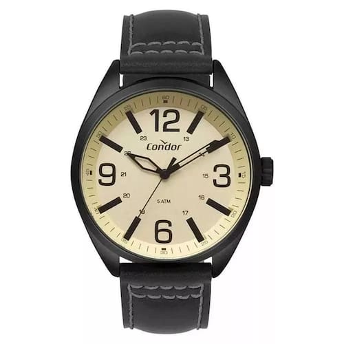 - relógio condor masculino com pulseira de couro, a elegante mistura entre o clássico e o moderno. Marca: condor calendário: não cronômetro: não alarme: não iluminação: não cor da caixa: preta cor do mostrador: champagne cor da pulseira: preta tipo de mostrador: analógico material do vidro: cristal mineral material da caixa: aço inoxidável material da pulseira: couro diâmetro da caixa: 45 mm espessura da caixa: 10 mm comprimento da pulseira: tipo de fecho: fivela resistência: 5 atm 50 metros garantia: 12 meses