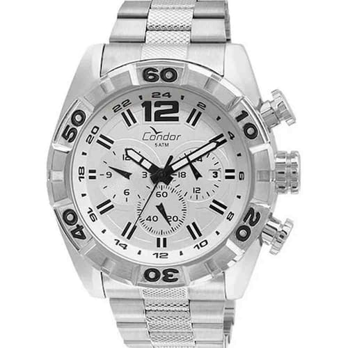 EspecificaçõesGêneroMasculinoGarantia12 MesesCorPrataFunçõesCalendário, CronógrafoMaterial da PulseiraMetalMecanismoAnalógicoResistência à ÁguaATM 5 (Resistente à Água - 50M)Tipo de EnergiaBateriaAcompanhaCertificado de Garantia, Embalagem Original , Manual de Instrução, Nota FiscalComprimento do Relógio22,0cm (Aprox)Espessura da Caixa1,2cm (Aprox)Largura da Caixa4,8cm (Aprox)Material da CaixaAçoMostradorPrata Com Detalhes em PretoVidroCristal MineralMedidas RelógioSimMarca.Condor