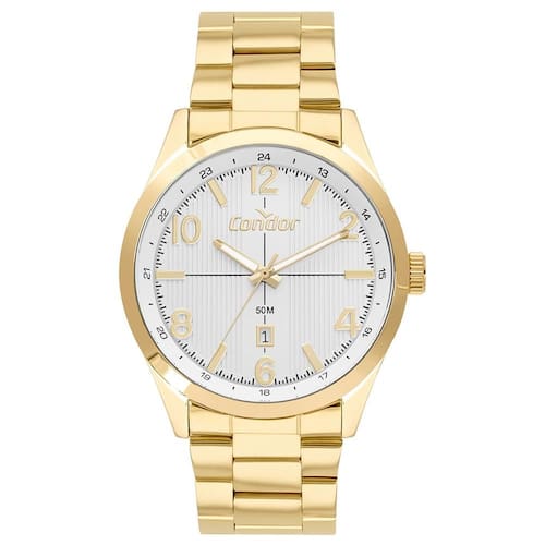 O relógio Condor CO2115MXQ/4K é uma opção prática e sofisticada para o uso diário. Seu design combina mostrador branco texturizado com detalhes dourados e calendário posicionado às 6h, proporcionando leitura clara e visual elegante.