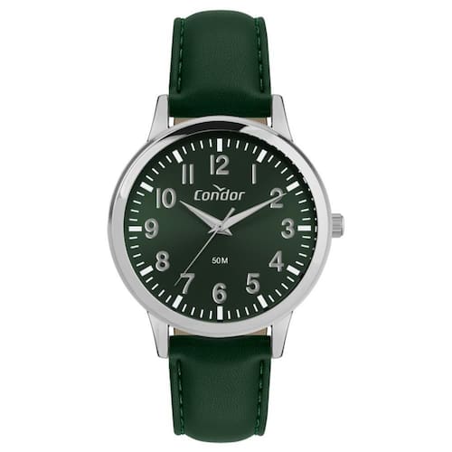 Relógio condor masculino ref: co2035nrp/3v casual prateado Descrição do produto: Caixa de metal Pulseira de material sintético verde Fundo Diâmetro / largura da caixa: 40.00 mm Funções: analógico Resistente à água 5 atm Alimentação do maquinário: bateria Maquina japonesa Mostrador verde com todos os números de 1 ano Marca: Não Informado