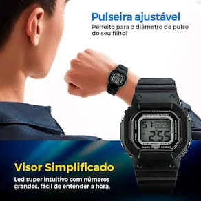 Relógio Digital Infantil à Prova d'Água com Caixa Ultra Premium - Temática Foguete Chegou o relógio digital infantil perfeito para crianças a partir de 6 anos e adolescentes de qualquer idade! Combinando estilo, funcionalidade e resistência, este relógio é ideal para atividades ao ar livre e dia a dia. Características do produto:- Relógio digital com formato quadrado na cor preta- À prova d'água- Funções de luz de LED e cronômetro- Pulseira ajustável de silicone para qualquer tamanho de pulso- Caixa ultra premium com temática de foguete, nas cores preto e brancoO kit inclui o relógio com design moderno e a caixa temática de foguete, sendo perfeito para presentear seu pequeno astronauta. Garanta praticidade e organização com esta excelente opção de presente!Não perca tempo e proporcione estilo e funcionalidade para o dia a dia do seu pequeno explorador. Adquira já o seu!
