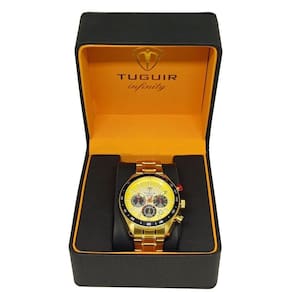 Relógio Cronógrafo Masculino de Aço Tuguir ógico 23-2231 Dourado e Preto Relógio Cronógrafo Masculino de Aço Tuguir ógico 23-2231 Dourado e Preto Marca: Tuguir Categoria: ógico ógico: Sim 1 Horário Ponteiros Fluorescentes: Sim Digital: Não Cronômetro: Sim Luz: Selecione Resistente à Água: 5 ATM Pode ser para nadar no raso, por pouco tempo submerso - Respingos: Sim - Chuva: Sim - Lavar Carro: Sim - Lavar Louça: Sim - Natação: Sim - Mergulho: Não Característica do Vidro: Cristal Mineral Tipo de Fecho: Dobrável com Botão Cor da Caixa: Dourado Material da Caixa: Aço Formato da Caixa: Redondo Diâmetro da Caixa: 41,00 mm Espessura da Caixa: 11,00 mm Cor da Pulseira: Dourado Material da Pulseira: Aço Largura da Pulseira: 17,50 mm Comprimento Máximo da Pulseira: 270,00 mm Alimentação: Bateria Interna Peso Líquido: 0,120 Kg Modelo: 23-2231 Cor Predominante: Dourado Cor Diferencial: Preto : 12 Meses Conteúdo da Embalagem: 01 Relógio 01 Embalagem 01 Termo de Marca: Não Informado