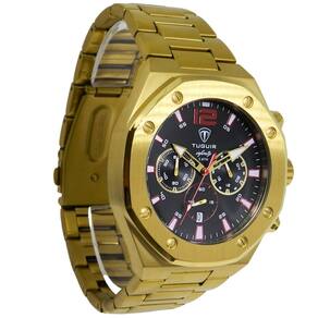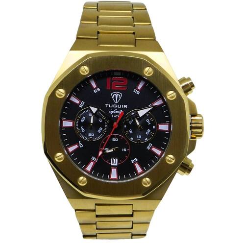 Marca: Tuguir Categoria: Analógico Analógico: Sim (0 Horário) Ponteiros Fluorescentes: Não Digital: Não Cronômetro: Sim Luz: Não Resistente à Água: 5 ATM - Respingos: Sim - Chuva: Sim - Lavar Carro: Sim - Lavar Louça: Sim - Natação: Sim - Mergulho: Não Característica do Vidro: Cristal Mineral Tipo de Fecho: Dobrável com Botão Cor da Caixa: Dourado Material da Caixa: Aço Formato da Caixa: Quadrado Comprimento da Caixa: 46,00 (mm) Largura da Caixa: 46,00 (mm) Espessura da Caixa: 11,50 (mm) Cor da Pulseira: Dourado Material da Pulseira: Aço Largura da Pulseira: 19,50 (mm) Comprimento Máximo da Pulseira: 280,00 (mm) Alimentação: Bateria Interna Peso Líquido: 0,160 Kg Modelo: GCS-1271 Cor Predominante: Dourado Cor Diferencial: Preto Garantia: 12 Meses