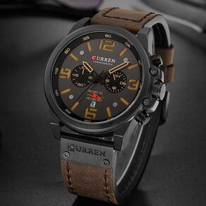 MOVIMENTO E MATERIAL — Movimento de quartzo, temporização precisa. 3 submostradores, display analógico, mostrador Hardlex, mostrador transparente, estojo de liga leve, couro confortável ajustável com fivela clássica.