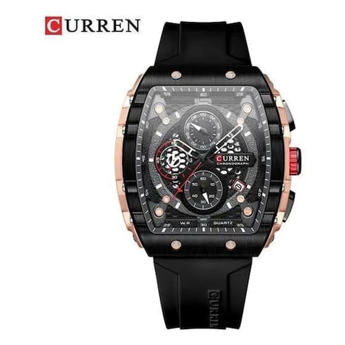 Característica: Luminoso, atuo dat, cronógrafo 1/10 segundos dial, segundos dial, dial minuto , pulseira de silicone, mostrador grande quadrado, à prova d'água 3 atm