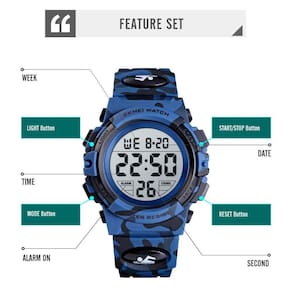 Relógios impermeáveis Boys Watch Digital Sports 50M Relógio de pulso analógico de quartzo para meninos e meninas com alarme - azul camuflado