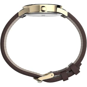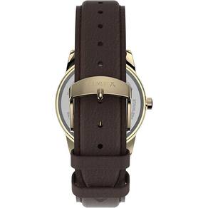Cinta de couro marrom ajustável de 20mm genuína se encaixa até 8 polegadas circunferência de pulso Branco discagem fácil de ler com numerais árabes parciais os Caixa de latão de 38mm com cristal de vidro mineral Indiglo luz-up relógio discagem resistente a 30m (100 pés): em geral, suporta respingos ou breve imersão na água, mas não adequado para nadar ou tomar banho