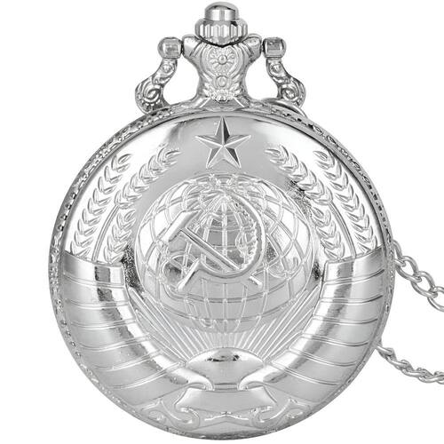 Especificações: Modelo: União Soviética Movimento: Quartz Cor: Prateado Material: Aço Inoxidável Funcionamento: Bateria Mostrador: Analógico Material do mostrador: Acrílico