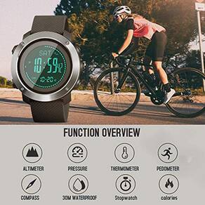 Design moderno de mostrador esportivo, perspectiva de estilo militar. Ele combina brilhantemente alta moda, precisão e funcionalidade. Um grande mostrador redondo oferece uma exibição fácil de ler da hora, data e semana. O relógio esportivo ao ar livre é uma boa escolha para todas as idades. Todos esses recursos oferecem uma boa experiência de uso.