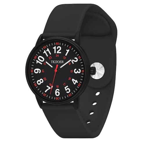 Especificações do produto Forma da caixa: redonda Tipo de tela: 3 mãos Movimento analógico: quartzo japonês Largura da pulseira: 20 mm/0,78 polegadas Diâmetro da caixa: 38 mm/1,49 polegadas Espessura da caixa: 9,9 mm/0,39 polegadas Material da pulseira: silicone Material traseiro da capa: aço inoxidável Material da coroa: aço inoxidável Profundidade resistente à água: 50 metros/164 pés* Os dados são medidos manualmente e podem conter pequenos erros. Consulte o produto real para obter precisão. - Fácil de ler: o relógio com marcações de 12 e 24 horas ajuda você a ler facilmente o horário militar; ponteiro e marcador luminosos; diâmetro da caixa de 38 mm/1,49 pol. - Relógio de enfermeira com segunda mão: relógio analógico japonês com movimento de quartzo, cronometragem precisa. O ponteiro vermelho altamente visível dos segundos facilita a obtenção de leituras de pulso precisas. - Relógio impermeável 5ATM: resistente à água até 50 m (164 pés), adequado para chuveiros de água fria e natação curta, mas não para mergulho ou snorkel! - Durabilidade e conforto: a pulseira de silicone é macia e confortável, fácil de limpar; possui barras de mola de liberação rápida para fácil remoção e substituição. O vidro mineral é resistente ao desgaste e a arranhões. - Compre com confiança: se o relógio parar de funcionar em uso normal dentro de 12 meses após a compra, você receberá um reembolso total ou uma substituição . Sinta-se à vontade para entrar em contato conosco a qualquer momento se encontrar algum problema, forneceremos uma solução satisfatória.