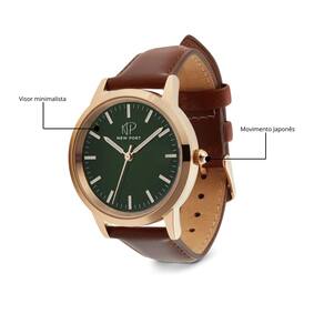 O Relógio Magnus 40mm da New Port, é a escolha ideal para mulheres que valorizam estilo, presença e autenticidade. Com pulseira em couro vegano marrom de acabamento premium, ele traz conforto e durabilidade para o uso diário.Sua caixa em aço rose adiciona um toque de requinte, enquanto o fundo verde oferece um contraste moderno e sofisticado. Os ponteiros com brilho noturno garantem visibilidade em qualquer ambiente, sem perder a elegância. Um relógio imponente, que une luxo e funcionalidade. O Magnus é feito para marcar presença em qualquer ocasião.