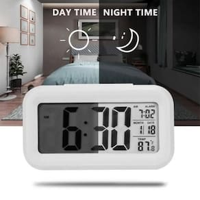 Função de luz inteligente: o despertador contém um sensor de luz. No escuro, a tela irá ligar automaticamente a função de luz suave, o que é conveniente para você verificar a Hora no meio da noite. Durante o dia, o brilho da tela voltará ao normal.