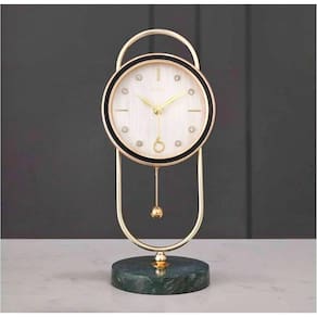 Relógio De Mesa Redondo Madre Perola Base Redonda Mármore