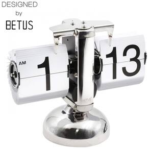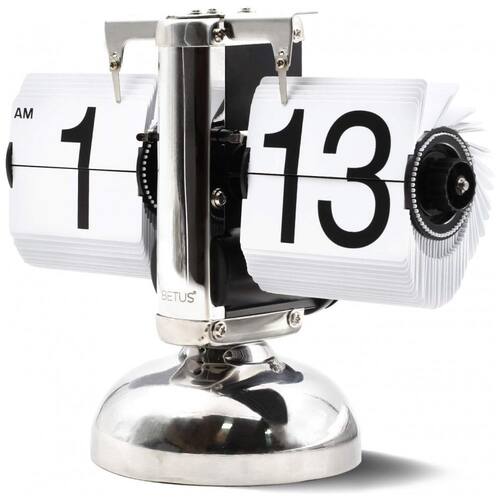 Relógio de Mesa Retrô Mecânico Alimentado por Bateria, Betus, Prata e Branco