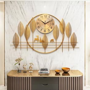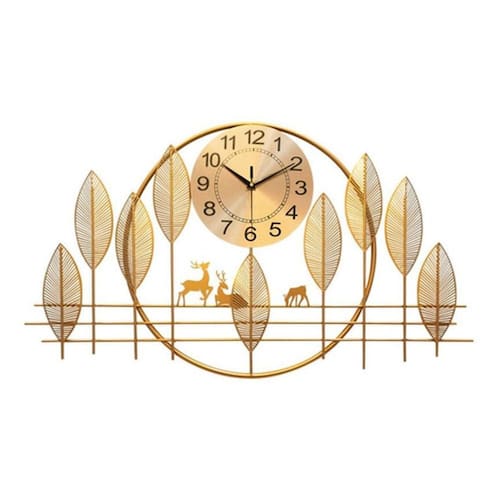 Em metal dourado, com lindas folhas e alces, com relógio central redondo