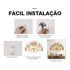 Comprimento total: 86 cm Altura total: 50 cm Diâmetro relógio central: 23 cm . Cor: dourado