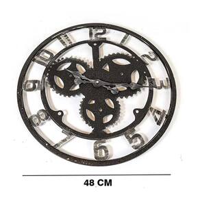 Relógio De Parede 3d Industrial Preto Prata Europeu 48cm