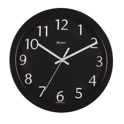 Relógio De Parede Alumínio 30cm Preto Herweg 6719 Amarelo - Relógio De Parede Alumínio 30cm Preto Herweg 6719