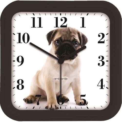 Mostrador: Branco com números pretos e imagem de cachorro pug