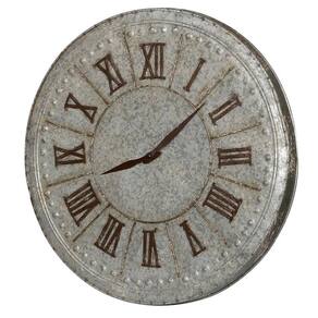 Relógio de parede redondo clássico Benjara de 20 polegadas, metal, algarismos romanos, vintage, cinza, marrom