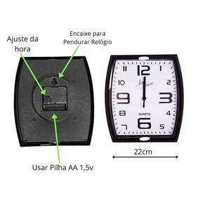 Contém: 1 relógio retangular 22cm Acompanha 1 pilha aa
