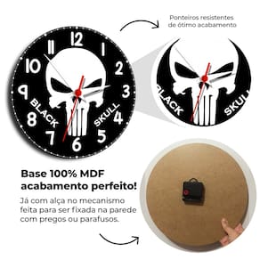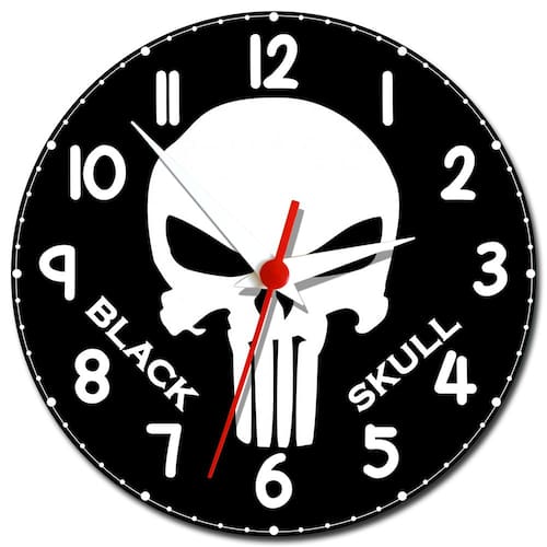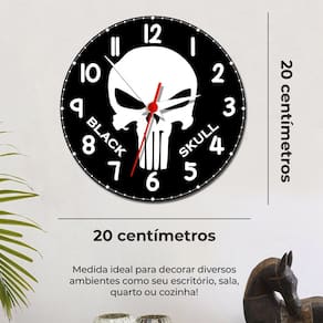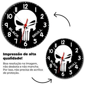 Relógio de Parede Caveira Preta Black Skull Decoração