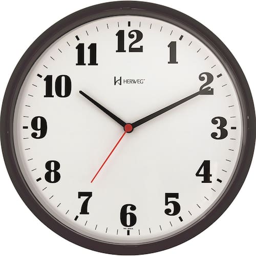 Relógio De Parede Herweg 6126-303 Tamanho: 26cm de diâmetro X 4cm de espessura Maquinário: Step Tic-tac Cor do fundo: Branco Cor da Estrutura: Cinza Base: Plástico injetado Vidro: Acrílico Usa pilha AA Fabricado por HERWEG RELÓGIOS com de 1 Ano Marca: Não Informado Ean: 7897280369827