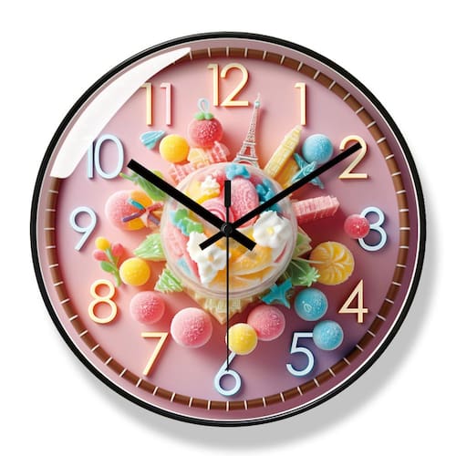 Material: Material da concha: plástico Material do espelho: vidro Material do mostrador: PVC Tamanho: 30 × 30 cm Peso: 1220 g Silencioso e sem tique-taque: este relógio funciona silenciosamente, tornando-o um complemento perfeito para quartos ou quartos infantis para um ambiente tranquilo. Design divertido com tema de doces: apresenta um tema divertido de doces com doces brilhantes e coloridos ao redor dos números, tornando-o uma peça de decoração alegre. Números fáceis de ler: os números grandes e vibrantes são fáceis de ler, o que os torna uma ferramenta divertida para as crianças aprenderem a contar as horas. Materiais duráveis: Feito com um robusto mostrador de PVC e espelho de vidro, este relógio foi projetado para durar e manter sua beleza ao longo do tempo. Leve e fácil de instalar: pesando apenas 1220g, este relógio é fácil de montar e adicionará um toque doce a qualquer espaço.