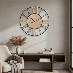 O relógio de parede decorativo vazado bege e preto é a peça perfeita para quem busca unir funcionalidade e estilo na decoração. Seu design moderno com números romanos e detalhes em metal garante um visual sofisticado que se destaca em qualquer ambiente.