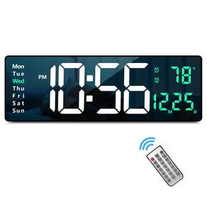 Relógio de parede digital com tela grande, relógio de parede grande de 38 cm, relógios de parede modernos de LED com controle remoto para decoração de sala de estar, relógio grande com regulação automática de brilho com temperatura de data, semana, verde - ?Tela LED grande de 16,2 polegadas?O relógio digital tem uma tela grande de 41 cm, dígitos jumbo transparentes de alto contraste de 10 cm tornam muito mais fácil de ler, mesmo à distância e de todos os ângulos. Aqui estão todos os recursos que você pode esperar para um relógio de parede digital: hora, data, semana e temperatura. Atenção: deve ser conectado para funcionar. Não funciona com bateria. - ?Regulador de brilho automático de 10 níveis?Com tela de brilho ajustável de 10 níveis, você pode ajustar facilmente a um brilho confortável manualmente usando o controle remoto. O relógio LED tem um sensor de escurecimento automático embutido, que também pode ajustar automaticamente o brilho conforme a luz muda, inteligente para fornecer as necessidades. - ?Função de memória?Há uma função de memória embutida, mesmo se a energia for desconectada, os dados de tempo não serão perdidos, não é necessário redefinir. Além disso, você pode definir dois alarmes separados se tiver um horário diferente. E este relógio de parede grande tem uma função de contagem ou contagem regressiva (até 99 minutos e 99 segundos). - ?Controle remoto?Todas as configurações e operações do relógio de parede grande não precisam ser removidas, mas podem ser facilmente feitas com o controle remoto. Observação: se você não conseguir encontrar o controle remoto e o cabo USB, certifique-se de abrir a outra extremidade da caixa para verificar. - ?Bonito e funcional?Este relógio de parede é adequado para sala de estar, cozinha, garagem, casa de fazenda, escritório, armazém, sala de aula, academia, loja, berçário. E também é o melhor presente para amigos, parceiros e idosos. Atenção: não há plugue, conecte com a porta USB ou APENAS adaptador de 5V/1A e 5V/2A. O adaptador é necessário para manter o relógio funcionando. A bateria só funciona para armazenar a configuração do relógio em caso de falta de energia principal.