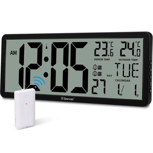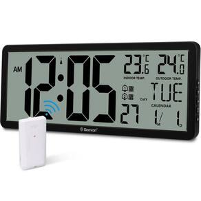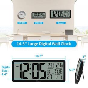 Relógio De Parede Digital Grande Wallarge De 14,5 \\'\\' Operado Por Bateria Com Números Enormes - Preto - 14 Polegadas Grande relógio de parede digital com números grandes fácil de ler. O relógio de parede digital WallarGe tem uma tela LCD de alta definição que mede 14 x 6 polegadas e a exibição da hora é de 8,1 x 4,3 polegadas. A tela grande ajuda você a ler a hora de vários ângulos à distância da sala. Você também pode ler a temperatura interna e a data na tela para obter informações completas. Relógio de parede digital operado por bateria - fácil de configurar. O relógio é suportado por bateria 4xAA (não incluída). Há um indicador de bateria fraca na tela quando a bateria não tem energia suficiente, não há mais preocupações em esquecer de substituir baterias novas. Os botões de função estão na parte traseira e são fáceis de configurar. Exibição de dia e temperatura comutável - Existem três modos opcionais para exibição de dia/temperatura: somente dia, somente temperatura, exibição de dia e temperatura em turnos a cada 10s. Basta clicar no botão atrás para escolher o modo de exibição de sua preferência. Não importa qual modo de dia/temperatura você escolher, a hora e a data não serão alteradas. Relógio digital grande para montagem em parede com suporte dobrável - Relógio digital para parede ou mesa. O relógio vem com uma régua de modelo de montagem mostrando 8,7 polegadas de distância entre dois furos de montagem, então você não precisa medir furos na parede. Se pretende que seja colocado sobre uma secretária sem furos na parede, basta desdobrar o suporte desdobrável. Relógio de parede com display grande com AUTO DST - O relógio ajustará automaticamente a hora no horário de verão com AUTO DST ativado. Possui dois modos de exibição de hora (horário militar e horário padrão), basta clicar no botão 24/12 para alternar. E o alarme é opcional, pode ser desligado manualmente se não houver necessidade.
