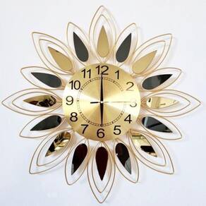 Relógio de parede dourado folhas espelhadas metal 60x60 Uma coleção luxuosa de relógios em metal dourado Com design europeu, esses modelos atendem os mais exigentes na arte da decoração. Ideal para ambientes que pedem toda a personalidade dessa tendência Sua estrutura tem formato de ula linda flor, com folhas espelhadas (douradas e fumê), relógio central em fundo também dourado, com números preto. Uma peça decorativa de fino acabamento e requinte Silencioso e sem tique-taque: o movimento de alta qualidade tem excelente qualidade, garantindo tempo preciso e uma vida útil mais longa. Movimento de quartzo silencioso, sem tique-taque, para garantir que você tenha um bom sono e não interfira no ambiente de trabalho. Funciona com pilha aa (acompanha pilha) . Dimensões Diâmetro total: 60 cm Diâmetro relógio central: 23 cm . Cores: Estrutura: dourada Folhas espelhadas: douradas e fumê Números: preto Ponteiro: preto Ref: a1669 .