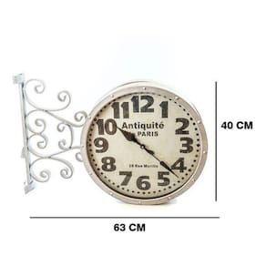 Relógio De Parede Duas Faces Modelo Estação Antiquité Paris O Relógio de Parede modelo de Estação com mostrador dupla face em um suporte é um acessório elegante e conveniente para o corredor, cozinha, varanda, hall... Tanto o morador que entra como pra quem sai da casa ou o hóspede, verá imediatamente a hora graças a dois mostradores localizados em ambos lados Esses relógios são chamados de Relógios de Estação, porque no século 19 eram frequentemente usados precisamente em estações de trem e estações ferroviárias. Modelo traz o design europeu Antiquité Paris Feito em metal e vidro, seu mecanismo de relógio quartzo, com fonte de alimentação em 2 pilhas AA (não inclusas) Altura: 40 cm Largura: 63 cm REF: F637