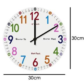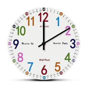 Material: Material da concha: Nenhum Material do espelho: Nenhum Material do mostrador: acrílico Tamanho: 12 polegadas Peso: 380 g Design divertido e vibrante com números coloridos e marcadores de tempo, perfeito para ajudar as crianças a aprenderem a contar as horas. Relógio de 12 polegadas com números em negrito e fáceis de ler, ideal para salas de aula ou salas de aula infantis. O movimento silencioso e não aderente de quartzo garante um ambiente silencioso para estudar, tirar uma soneca ou brincar. Feito com acrílico durável para o mostrador, garantindo uso duradouro e fácil leitura do tempo. Uma ferramenta educacional perfeita para jovens alunos, ajudando as crianças a praticarem o tempo de leitura de uma forma envolvente.